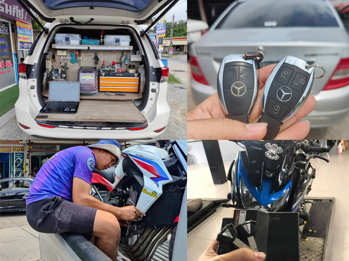 ผลงานบางส่วนที่เราออกไปให้บริการ แก้ไขปัญหา กุญแจรถเสีย รถยนต์ รถมอร์เตอร์ไซต์ รถทุกชนิด หรือ กุญแจประตูพัง กุญแจหาย ตูเซฟเปิดไม่ได้ ทั้งระบบรีโมทฯลฯ
